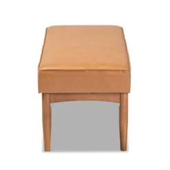 Arvid Mid-Century Faux Leather Upholstered Wood Dining Bench Walnut/Brown – Baxton Studio