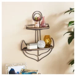 6 Hook Amelia Wall Shelf With Hanging Rod Black/Rustic – Danya B.
