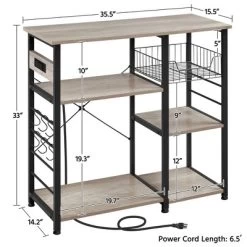 Yaheetech Vintage Kitchen Island Baker’s Rack With Power Outlet Utility Microwave Stand