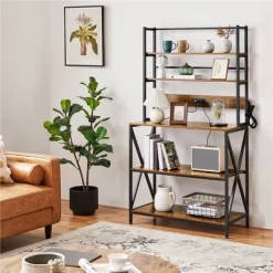 Yaheetech 67.5″ H Baker’s Rack With Power Outlet For Kitchen Storage, Rustic Brown