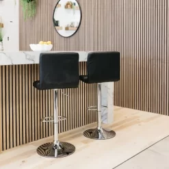 Elama 2 Piece Velvet Tufted Bar Chair In Black With Metal Legs