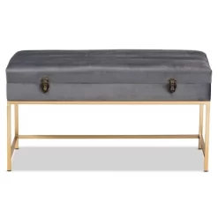 Aliana Velvet Fabric And Metal Large Ottoman Gold – Baxton Studio