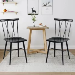 Costway Set Of 2 Dining Side Chairs Chairs Armless Cross Back Kitchen Bistro Caf