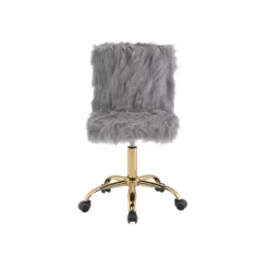- This office Chair features an adjustable seat height, casters, faux fur fabric upholstery, and a gold base finish.
