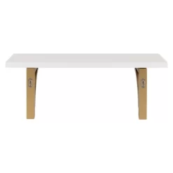 The Kate and Laurel – Corblynd wall shelf is an easy way to feature your cherished possessions, mementos, and collectibles. Display your home accents in groupings placed either directly on the shelf or use an exciting book or colorful pedestal as a perch on the shelf to create a compelling motif. Well-placed shelves can be so versatile in adding space to a room. Hate that clutter on your nightstand? Install shelving above the area to take your organization to the next level. This shelf is a classic, traditional design which works with most home decors and will add a new dimension of finesse to a bathroom, hallway or even a kitchen. It is made of a light wooden material and is 24 inches wide by 8 inches deep. The wooden brackets are a casual, curved style. A recessed keyhole hanging system is installed on both sides for a secure and even fit against a wall.