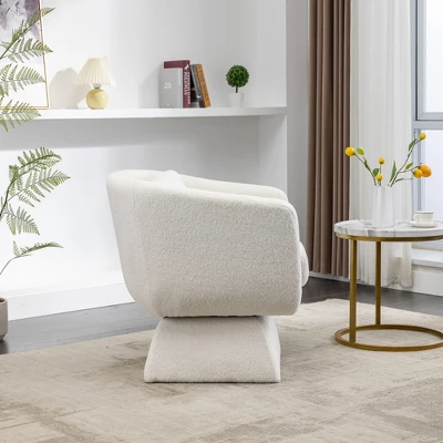 - [Modern Elegant Style] The boucle and upholstery detailing of this swivel chair adds an elegant flair to your home.