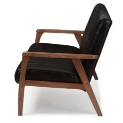 Nikko Mid-Century Modern Scandinavian Style Faux Leather Wooden 3 Seater Sofa – Baxton Studio