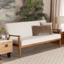 Stratton Boucle Fabric And Wood Sofa White/Walnut Brown – Baxton Studio