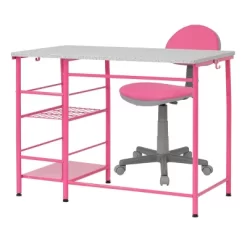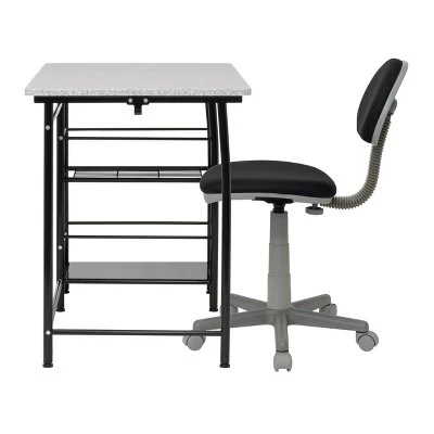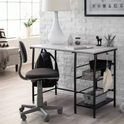 The Study Zone II Student Desk & Task Chair Set provides the perfect place for studying, homework, or just spending some time on the computer. It fits in small spaces so it’s perfect for a bedroom. The large work surface and two side storage shelves hold supplies and binders. hang your cords, headphones, or a backpack on the hooks on the side of the desktop. The swivel office chair provides a cushioned backrest and seat for added comfort. Adjust the height of the seat to the perfect height and move it where you need it easily with caster wheels.