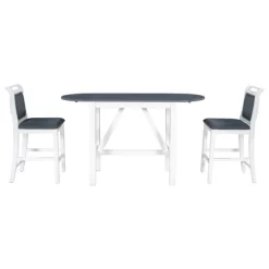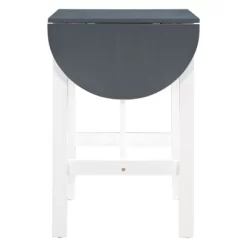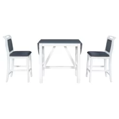 Offer 2 great dining chairs and an attractive kitchen table, this refined dinette set will reinvent your dining room with its extendable drop leaf design. Featured with two foldable half-round sides, this table provides you with the flexibility of creating more living space or eating space as needed. Built with a solid rubber wood frame, this kitchen set is designed to last for years. The combination of a finished white coating with dark gray cushion is ideal for indoor rustic feelings while the triangular supportive bars and stretcher under the table create a sturdy dining experience. Perfect size for your small studio apartment or a small dining room. The top is rubberwood, the table can also be used as a kitchen island. Just put the dining set standing against the wall to avoid crowded feelings. Built with a unique back with a handle and silver dots decoration, this dining set provides a tasteful air of charm to your dining room. Refreshing color gives your space a farmhouse aesthetic. Extended Dining Table: 59.8″x23.8″x35.4″; Folded Dining Table: 35.4″x23.8″x35.4″; Dining Chair: 18″x19.8″x40″; Seat Depth: 16.7″; Seat Height: 25.2″; Seat Width: 18″.