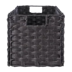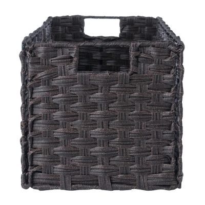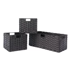 - Includes 3 foldable, chocolate finished baskets made from woven polypropylene