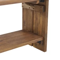 Organize your entryway, mudroom or living space with this gorgeous acacia wood bench. The bench is both beautiful and functional, providing ample storage and style for your home’s entryway or hallway. This rustic bench has a minimalist look made from solid acacia wood. The natural aged stain highlights the subtle imperfections such as knots and cracks that are part of the wood’s character. This versatile piece combines seating and storage into one, making it an ideal option for optimizing your space.