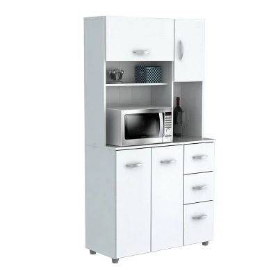 - Microwave Storage Cabinet by Inval, finished in rich "White" laminate in durable melamine which is stain, heat and scratch resistant.