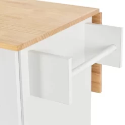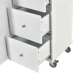 This delicate kitchen island will bring convenience and more living space to your life. Available in black, white, and gray-blue, it will perfectly match your decorating style and give your kitchen a high-end look. This island has a storage cabinet, three drawers, a foldable drop-leaf, and two lockable wheels. You can put small kitchen appliances and tableware into the cabinet and drawers to make your kitchen more neat and organized. This island is suitable for both cooking and eating. The island is movable, so you can put it anywhere, and includes two locking wheels. Moreover, putting down the drop-leaf will save you more space.