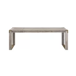 Make a dynamic statement with the Boraam 5-piece Montana Dining Room Set. The set is available with several different combinations of our dining table, bench, and dining chairs. The table and chairs are constructed with solid Acacia wood. The chairs are also upholstered with high-density foam wrapped in plush brown faux leather upholstered seat. This 5-piece set is available in our new Light Barnwood Wire-Brush finish. The light barnwood finish and Burnished metal accents will bring a warm energy to your home. The dining table has a 15.75” drop leaf extending the table to 88.5 inches, seating up-to 8 guests comfortably. This set is ready for assembly upon delivery with all tools and hardware included.