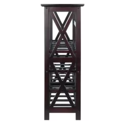 The Aiden Narrow Baker’s Rack by Winsome combines the styling of an antique Tuscan baker’s rack with a contemporary shelving unit that’s perfect for smaller spaces. Bring a touch of open-concept styling to your kitchen where the rack can keep a basket of fruit, mixing bowls, and a few bottles of wine. Or use it in the living room to array your favorite plants, framed photos, or books. The rack also makes an ideal shelf unit in the bathroom for guest towels or decorative items. Made of Solid Wood in a rich Coffee finish, it has four shelves with nearly 15″” of clearance between shelves for taller items. An ideal piece for apartment living or smaller rooms, the open styling provides storage with an airy feel. Shipped in one box with hardware needed for assembly.