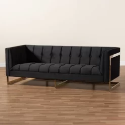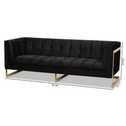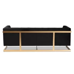 Elevate your living space with the striking glamour of the Ambra sofa. Made in China, this tailored sofa features rows of channel tufting that accentuate the subtle sheen in the soft velvet fabric. The sofa rests on a stunning gold-tone stainless steel frame, providing an open, airy ambiance. The Ambra will arrive fully assembled and is embellished with button tufting and piping for a touch of refinement. Designed for both style and comfort, the Ambra provides a truly luxurious feel in any space.