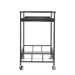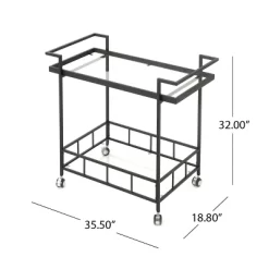 Crafted according to the highest standards from tempered glass and iron, this Christopher Knight Home Ambrose Industrial Bar Cart with Tempered Glass is the perfect accessory for all of your entertaining. With 2 shelves there is plenty of room for all your bar needs. Casters make this cart easy to move from room to room. With this Christopher Knight Home Ambrose Industrial Iron Bar Cart with Tempered Glass you are sure to be the envy of the town.