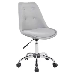 This Techni Mobili Office Task Chair is simply elegant to the eye with it’s deep tufted buttons and design. It features a pneumatic seat height adjustment lever that provides a 5 inch range in seat height from 19″ to up 24″ high. The durable chrome base sits atop non-marking nylon casters. This chair will definitely be a great addition to any kid/ teen room or office setting. Weight Capacity: 150lbs. Color: Gray Overall With: 20 Inches Overall Height: 33.5 – 38.75 Inches Overall Depth: 21.25 Inches