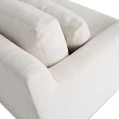 Your family will love this extra deep and cozy loveseat. The plush bench seat comes with removable and reversible cushions that are filled with foam encased in down and feathers for a super-soft feel. To help you relax with peace of mind, this comfy couch is upholstered in a durable linen-blend fabric that will withstand everyday wear and tear. Pair with the matching sofa and accent chair for living room furniture with a cohesive look. Arriving at your home in one box, this loveseat comes pre-assembled so you can quickly enjoy time relaxing with family and friends. If you love the look of a modern, low-profile loveseat, this furniture piece is a winner.