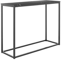 Endlessly versatile, the timeless style of this Baize Console makes it a classic. Designed with a smooth black marble top accented by a Parson’s style black frame, its chic geometry makes it ideal in a hall, foyer, or behind the living room sofa. Care Instructions: Dust regularly with a soft, dry cloth. Never use oiled or treated cloths on lacquered finishes. Some finishes can be wiped with a damp (not wet) cloth, followed at once by rubbing with a dry cloth to remove fingerprints and smudges. For persistent spots, gently clean with a soft cloth and a solution of water and mild soap, make sure to wipe dry. Use adhesive felt pads, coasters and placemats to protect your furniture.