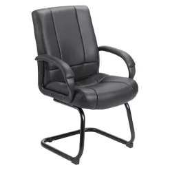 This guest chair is the perfect companion piece to our B7901 and B7906 executive chairs. Like its snazzy mid and high back counterparts, it provides a professional, muted look with its soft and durable Caressoft leather upholstery. In addition to integrated lumbar support, it features a sturdy cantilever base for optimal stability. Its total arm height is 27”, its seat height is 19”, and its overall size is 27” W x 27” D x 40” H.
