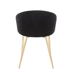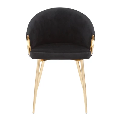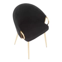 Chic modern style shines bright with the unique design of the Claire Chair. With a rounded low backrest, stylish gold armrests and a gold metal frame, it’s the perfect piece for your contemporary dining area. The comfy seat is perfect for long conversations, or a quick morning breakfast. The Claire Chair is upholstered in lush velvet and available in various bold colors.