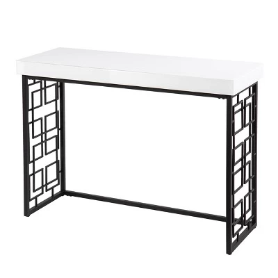 Add a modern element to your home décor with the Aiden Lane Cobepers Contemporary Console Table. A spacious glass tabletop provides plenty of room to display knickknacks or hold your favorite books, while the geometric frame design creates a unique feel. Tuck this long console table behind your living room sofa to keep the TV remote and your drink close at hand, or place in your entryway for a convenient place to collect wallets and keys. Contemporary styling comes home with this two-tone sofa table.