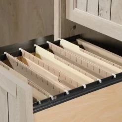 - Lower drawer with full extension slides holds letter or legal size hanging files to help keep you organized.