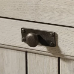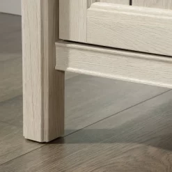 Transform your home office or workspace into a cottage-inspired retreat with this computer desk from the Costa collection. Its durable, 1″ thick top provides you with a spacious surface and ample amount of room for all your must-have desk essentials – laptop, your collection of notepads, a cup full a pens and even an accent lamp. It features three storage drawers that open and close on smooth metal runners for easy access storage of miscellaneous office items. The lower drawer with full extension slides holds letter or legal size hanging files to keep you even more organized! Behind the swinging door is a hidden area that includes an adjustable shelf and accommodates a vertical CPU tower. It also includes a desktop grommet hole so you can keep all your cords and wires neat and out of the way. Its framed, slat-front detailing on the doors and drawers give this desk a coastal vibe that is sure to stand out wherever you use it. Finished on all sides in Chalked Chestnut®, this beautiful computer desk will have you feeling inspired and ready to work.