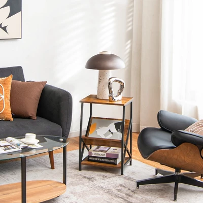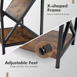 With a open shelf, a V-shaped bookshelf and a bottom shelf, the side table provides enough storage space for your cups, phone, books and magazines. Each tier can support up to 44 lbs. Besides, equipped with solid steel frame, side x-shaped structure and adjustable feet, it’s durable and not easy to wobble. In addition, industrial look and attractive colors make it a real eye-catcher in your living room, home office and bedroom. Moreover, waterproof surface of the top allows for easy cleaning. And it’s also super easy to assemble.