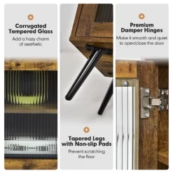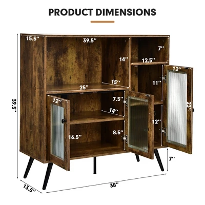 - Open & Enclosed Storage Options: The industrial sideboard features ample storage capacity, including 2 open compartments and 2 enclosed cabinets. It will facilitate classified storage or display. What’s more, the cabinet also boasts the tempered glass doors with corrugated pattern, which ensure durability and add to the appeal.