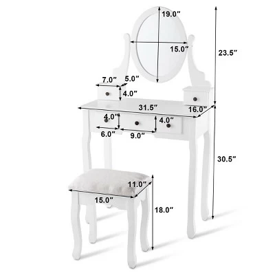 - Sufficient Storage & Display Space: The vanity tabletop is spacious enough to offer you ample space for storing or displaying your cosmetics, jewelry or decorative stuff. Two small top drawers under the mirror and three bigger drawers are easily pulled out or pushed in and are designed for storing your jewelry