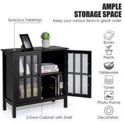 • Ample Storage Space & Glass Doors: Equipped with a spacious tabletop and 2-tier shelf, this cabinet provides enough storage space for your various items like books, tableware, towels or plants. Moreover, transparent glass-paneled doors make it easy for you to see the position of the items with rounded knobs for easy opening and closing.