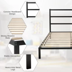 - Simple & Modern Design: Without any complicated decoration, our metal bed frame adopts a concise headboard design and classic matte black finish to create a modern appearance. It can complement each other with a variety of decoration styles and add unique charm to your bedroom.