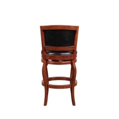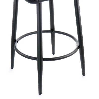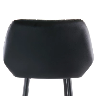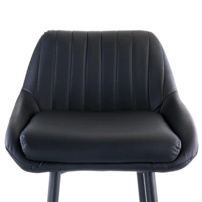 Add a stylish touch to your home bar or kitchen counters with the Elama Faux Leather Bar Chair in Black with Metal Legs. This chair is uniquely shaped to form to you while seated. No arms allow you to seat the stools next to each other without worrying about lack of space. Each chair is crafted from quality metal and faux leather for a strong and long lasting design. The vertical stitched pattern adds a stylish accent to any home decor.