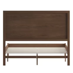 Refresh the look of your sleep space without breaking your budget when you purchase this wooden platform bed. Clean lines and a minimalist design allow this wood platform bed to blend seamlessly in any décor. The included headboard rounds out the style of this bed and lends an upmarket feel to your bedroom. Comprised of solid wood with an MDF veneer, this platform bed is designed for many years of use and holds up to 800 lbs. static weight. Adjustable floor glides ensure you have a level sleeping surface and protect your hard indoor flooring surfaces. Supportive wood slats are designed to hold any mattress with no box spring required and all tools and hardware are included for quick and easy assembly. Wipe your new bed with a damp cloth to maintain that just out of the box look.