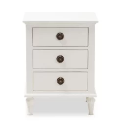 Venezia French – Inspired Rustic Washed Wood 3 – Drawer Nightstand – White – Baxton Studio