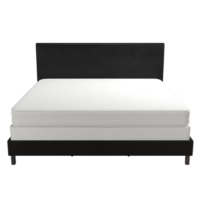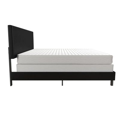 Simple and chic, the Jena Upholstered Bed is exactly what your bedroom décor has been missing. Elegantly designed, this bed frame is built with sturdy metal that has been reinforced with metal side rails and center legs to ensure long-lasting support and comfort. Moreover, this bed features a modern rectangular headboard made of robust wood and upholstered in faux leather or linen. With only a center seam in the headboard, the Jena proves that there is beauty in simplicity. If you are looking for a statement piece that will not overwhelm your bedroom décor, the Jena Upholstered Bed is the perfect solution for a focal point of your bedroom that is both trendy and simple. Available in multiple colors and finishes, the Jena Upholstered Bed is a timeless beauty that will fit any type of décor! Offered in multiple sizes for your convenience. Box spring or foundation required. Sold separately.