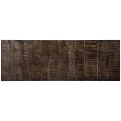 No ordinary take on modern farmhouse styling, this console sofa table serves up shapely style. Brown, gray and white hues give the distressed top and shelf loads of cool character. Curvaceous black metal base brings a fresh twist into the mix. Signature Design by Ashley is a registered trademark of Ashley Furniture Industries, Inc.