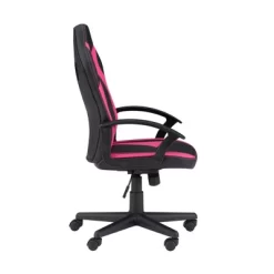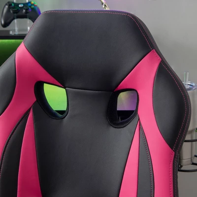 Whether you’re strapping in for an all nighter or just dropping by for a quick round, this gaming chair provides all the necessary ergonomic support and mobility to keep you in the zone. The high backrest and foam seat cushion are upholstered in pink and black faux leather for extra comfort, easy cleaning, and pizazz. A gas lift allows for seamless height adjustments, while holes in the headrest offer extra ventilation and the option to attach a pillow. Convenience, support, and style; let the games begin.