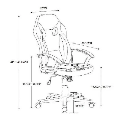 Adjustable Floor to Seat Height: 17-3/4” – 22-1/2”