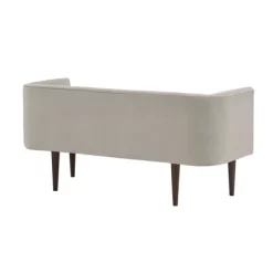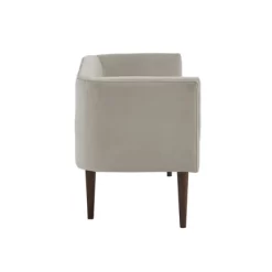 The Lianna Accent Bench offers a fashionably unique update to your living room or entryway. This accent bench is upholstered in a rich velvet fabric and features a low back and sides, for a chic transitional look. The solid wood legs flaunt a dark brown finish that adds a bold contrast to the upholstery. Leg assembly is required and a tool is included.
