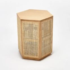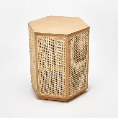 Lend subtle style and retro appeal to your indoor space with this simple yet stylish Lomita Rattan Accent Table from Project 62â˘. Crafted with an attractive rattan exterior, this accent table comes with a wood frame and a fun hexagon shape for retro style. The neutral hue of this stylish side table makes for easy blending, while the compact silhouette fits neatly into any corner with ease. The flat tabletop provides a convenient place to rest beverages, snacks or your favorite read.