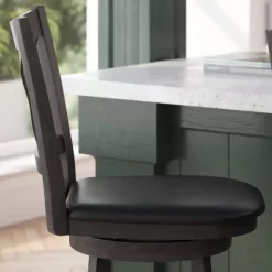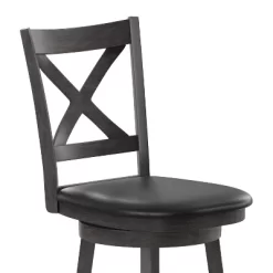 Upgrade the look of our kitchen island, dining room, or provide extra seating options with this classic wood counter height stool that is a welcome addition to any living space. The richly hued wood grain look, available in 2 finishes, creates a warm, inviting ambiance. Constructed of solid wood, boasting 360° swivel, and an integrated footrest for additional comfort, this chair provides a comfortable and stable seating experience.