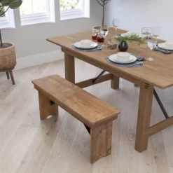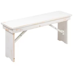 This beautiful antique rustic folding bench is ideal for the mudroom, entryways and hallways or additional seating at the kitchen or dining table. This farmhouse bench is durably constructed of solid pine and boasts 16 gauge steel braces. Designed to seat up to 2 adults, this charming country style bench will soon be a favorite piece.