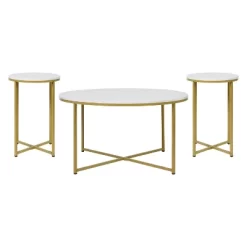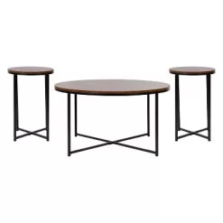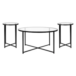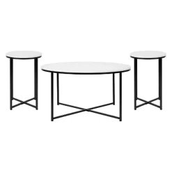 Open concept interior designs request furniture that is chicly functional, and this 3 piece coffee and end table set meets those requests and more. Immediately regarded for their modern aesthetic, the coffee table features a modish x-shaped crisscross frame while the end table provides stylish contrast and agile function. Dynamic in their usage, these pieces are ideal in a multitude of contemporary home spaces.