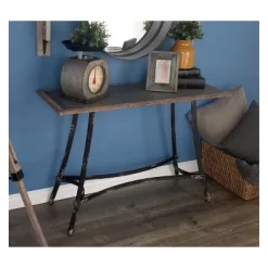 - •Metal console table carries dark gray table top with black frames and rusted brown finish