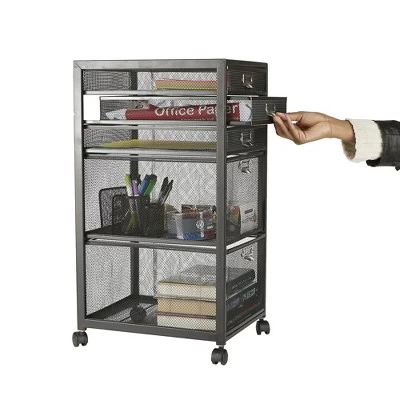 The MIND READER Rolling File Cabinet brings you sleek, space-saving, mobile storage for your kitchen, garage, basement, or office. Featuring five smooth-gliding drawers with cut out handles, that can be pulled all the way out, removed, reorganized, and restored snugly as many times as you like.Our mesh drawer organizer is lightweight, even when filled, making maneuvering and gliding it around your home on its four caster wheels a breeze. It’s perfect for all kinds of items like paper, tools, toys, and all other things your family can think of. The two tall storage drawers and three slim trays give you endless storage possibilities.Other rolling drawer organizer carts are built with flimsy materials, easily bending, warping, or breaking under the weight of your things. The mesh metal frame on our rolling cart organizer has been precision engineered for strength and durability. The MIND READER Rolling File Cabinet is made with a combination of top-grade plastic and steel, ensuring durable storage that will keep your items neatly stored for as long as you need.The drawers are also removable and make cleaning this slim storage cart effortless. Whether it’s kitchen spills, makeup stains, or paint from the garage or tool shed, just quickly wipe it using a dry or wet cloth, and your rolling toolbox with drawers will be looking fresh and new! The MIND READER Rolling File Cabinet is your all in one solution for your storage and organizing needs. Buy one today!
