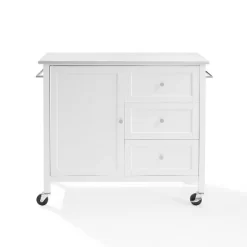 Designed with enduring style, the Oxford Kitchen Island’s traditional silhouette is sure to be a showstopper. Featuring classic design elements like raised panels and decorative carved spindles, this island brings an upscale look to kitchen organization. With two pass-through cabinets and two pass-through drawers, you can easily access cookware, small appliances, and utensils from either side of the island. The sturdy built-up countertop provides a large, convenient workspace, making the Oxford Kitchen Island a smart addition to our home.